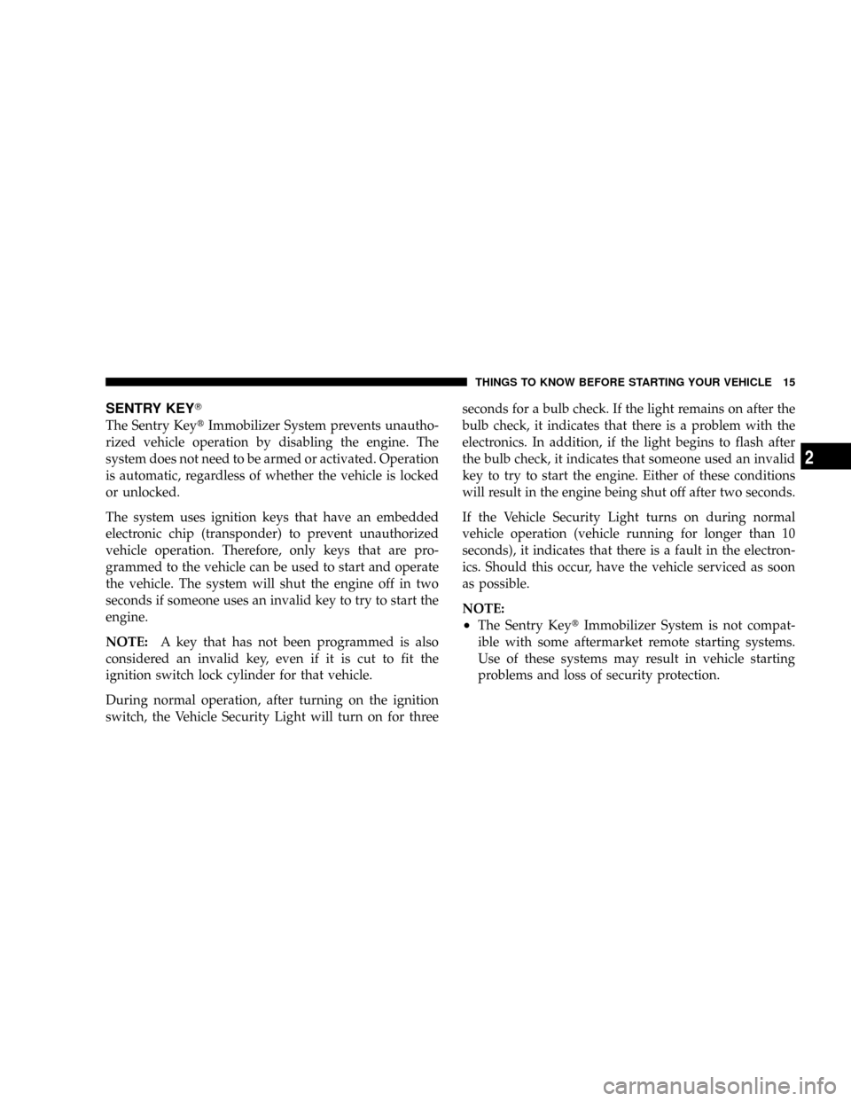 switch, the Vehicle Security Light will turn on for threeseconds for a bulb check. If the light remains on after the