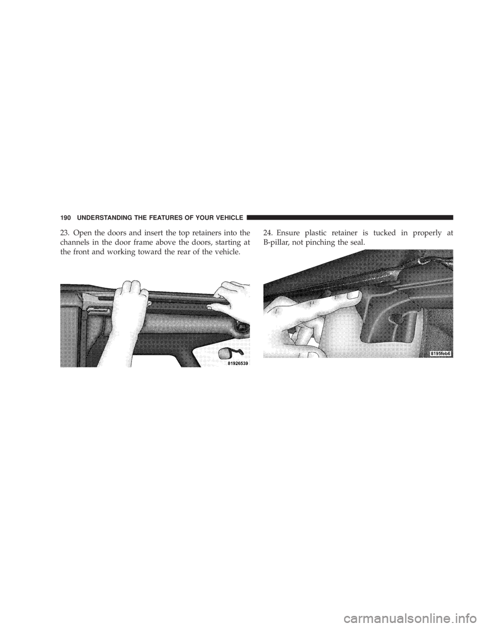 the front and working toward the rear of the vehicle.24. Ensure plastic retainer is tucked in properly at