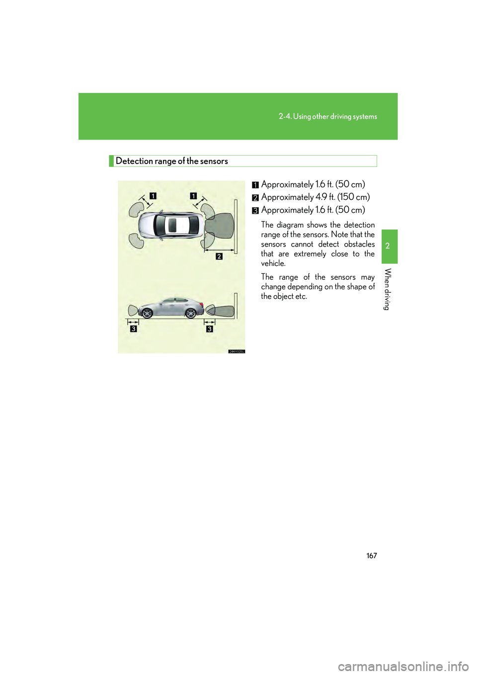 Detection range of the sensorsApproximately 1.6 ft. (50 cm)