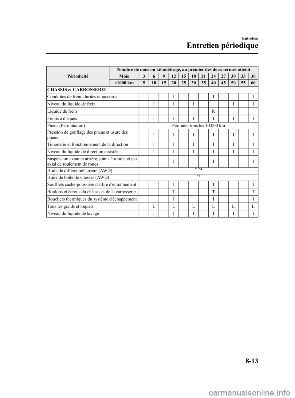 Pneus (Permutation) Permuter tous les 8.000 km (5.000 milles)