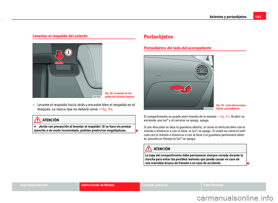 El compartimento se puede abrir tirando de la maneta ⇒ fig. 95. Al abrir se