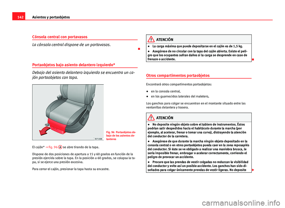 consola central o en otros portaobjetos pueda caer en la zona reposapiés