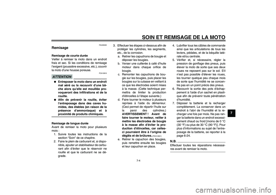 N.B.Effectuer toutes les réparations nécessai-res avant de remiser la moto.