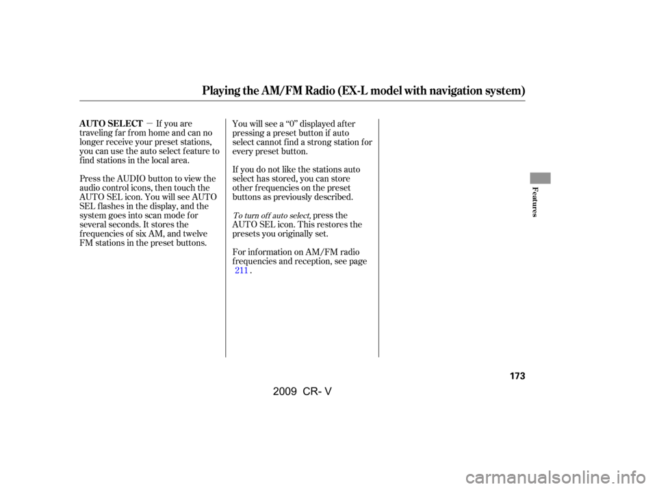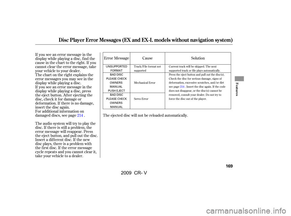 HONDA CR-V 2009 RD1-RD5, RE7 / 3.G Owners Manual Your vehicle’s in-dash disc changer