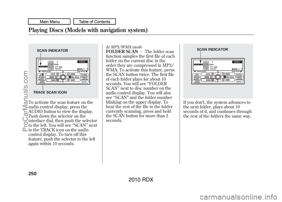 ACURA RDX 2010  Owners Manual To activate the scan feature on the