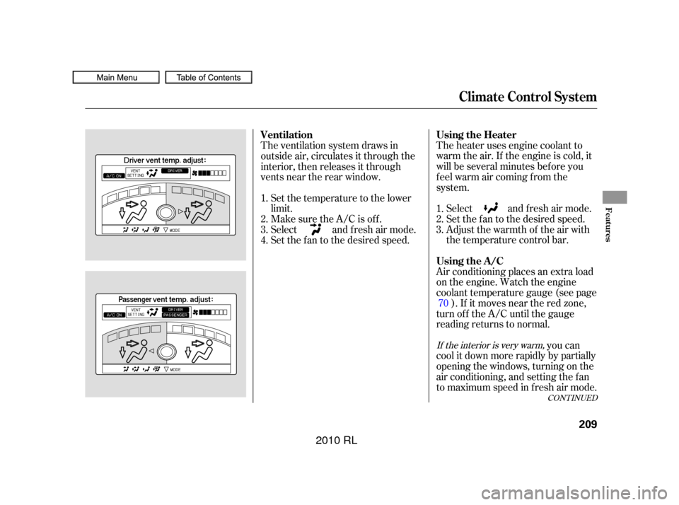 Acura RL 2010  Owners Manual The heater uses engine coolant to
