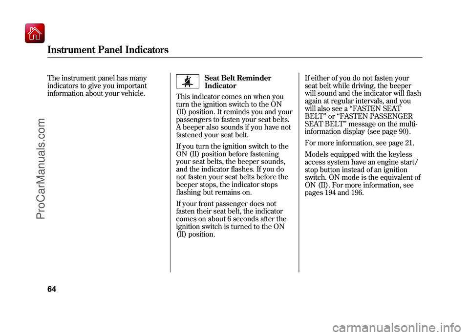 Instrument Panel Indicators6409/10/28 17:15:37 10 ACURA ZDX KA KC New North America Own 50 31SZN600 enu