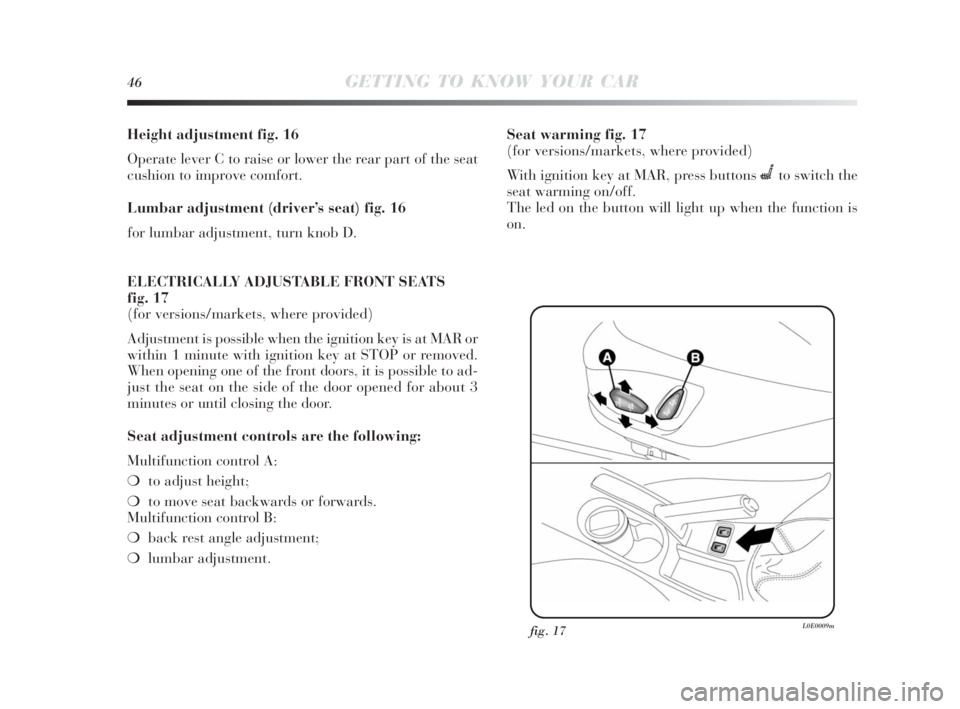 ❍lumbar adjustment.Seat warming fig. 17