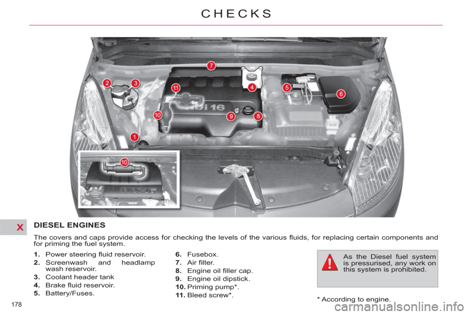 Bonnet 174Running out of fuel (Diesel) 176Petrol engines 177Diesel engines 178Checking levels 179Checks 181