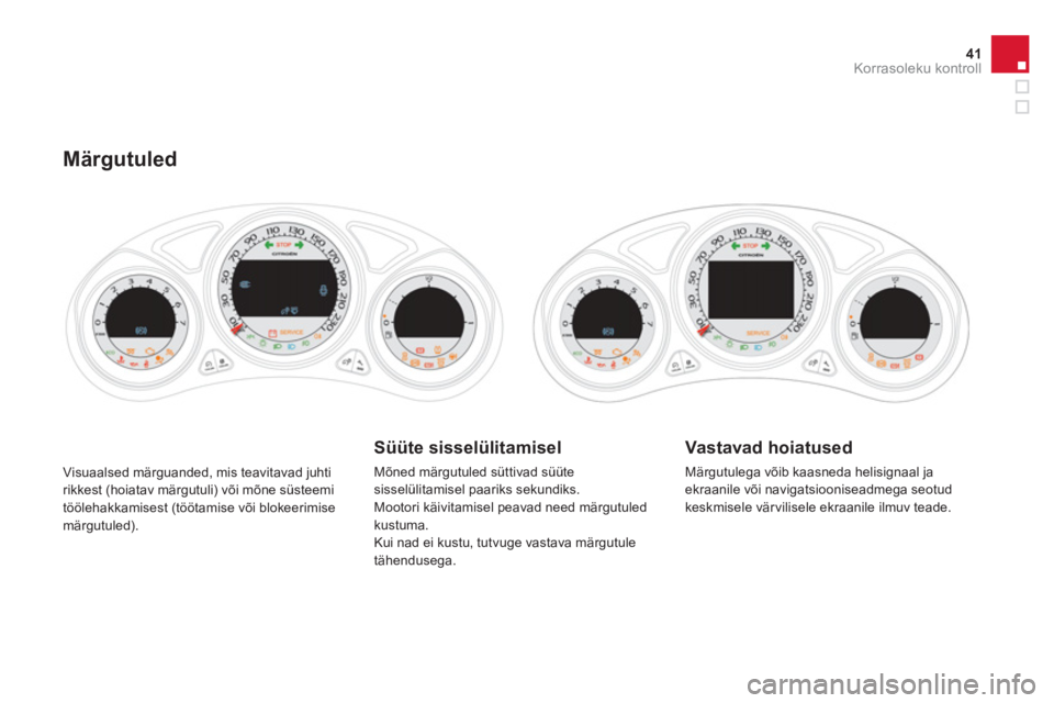sisselülitamisel paariks sekundiks. Mootori käivitamisel peavad need märgutuledkustuma.Kui nad ei kustu, tutvuge vastava märgutule