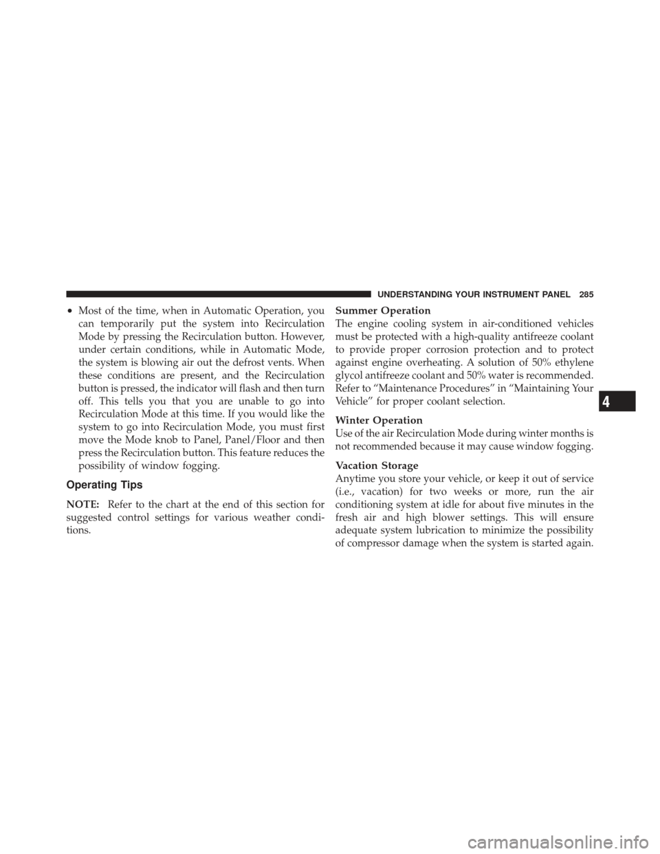 UNDERSTANDING YOUR INSTRUMENT PANEL 285