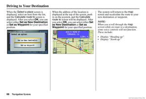 Regardless of whether the user c hooses route guidance, there are cautionary screens before and dur ing the route urging the user to be extra cautious, and obey a ll traffic restrictions. See Unverified Area Routing on page 85.