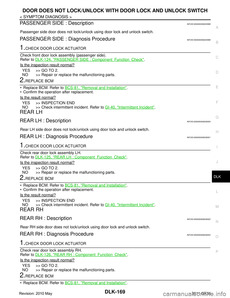 3. Check “LOCK/UNLOCK BY I-KEY” setting in “WORK SUPPORT”. Refer to DLK-41, "