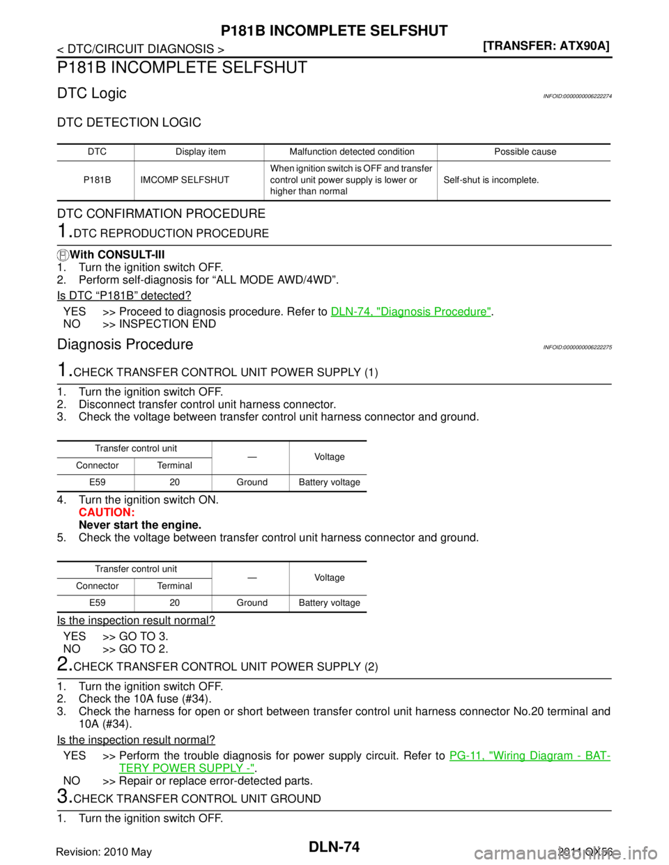 "P181B" is detected, Replace transfer control unit. Refer to DLN-107, "