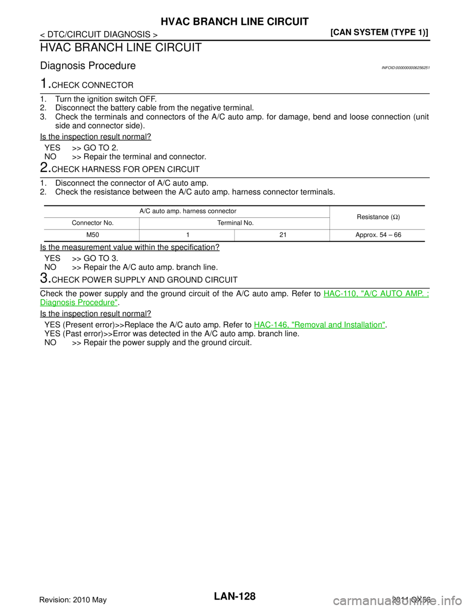 NO >> Repair the A/C auto amp. branch line.