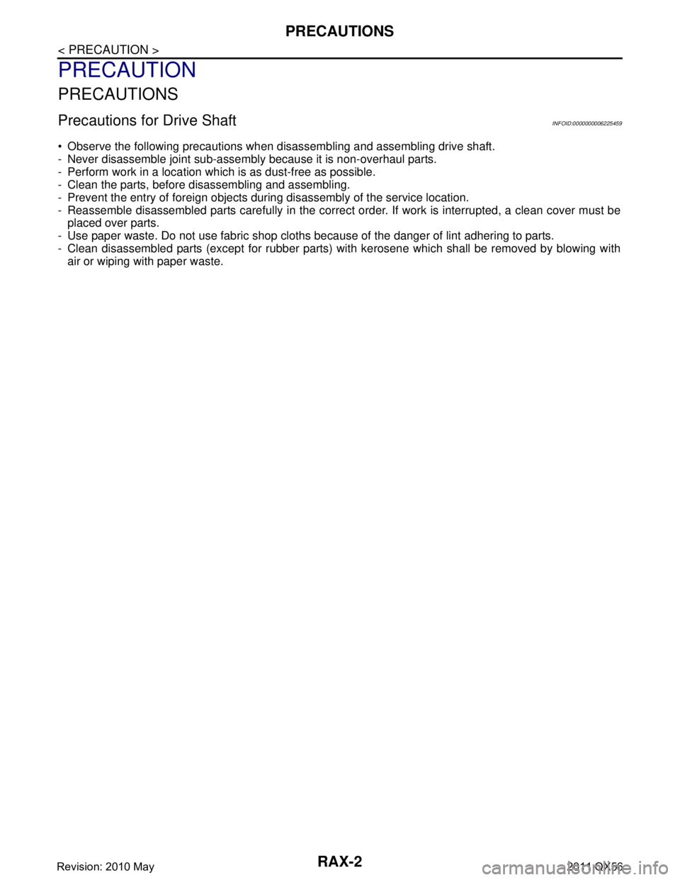• Observe the following precautions when disassembling and assembling drive shaft.