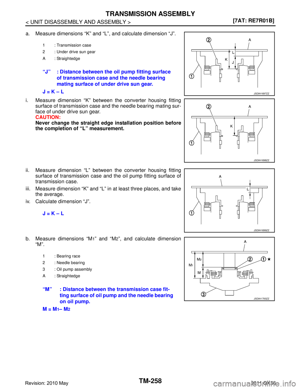 “M” : Distance between the transmission case fit- ting surface of oil pump and the needle bearing