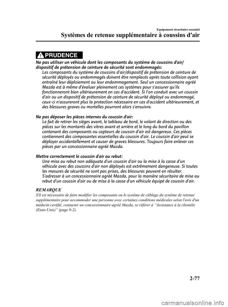 médecin certifié, contacter un concessionnaire agréé Mazda, se référer à “Assistance à la clientèle