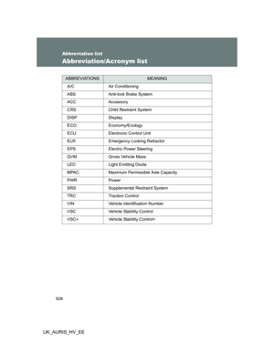 Abbreviation list........................ 508