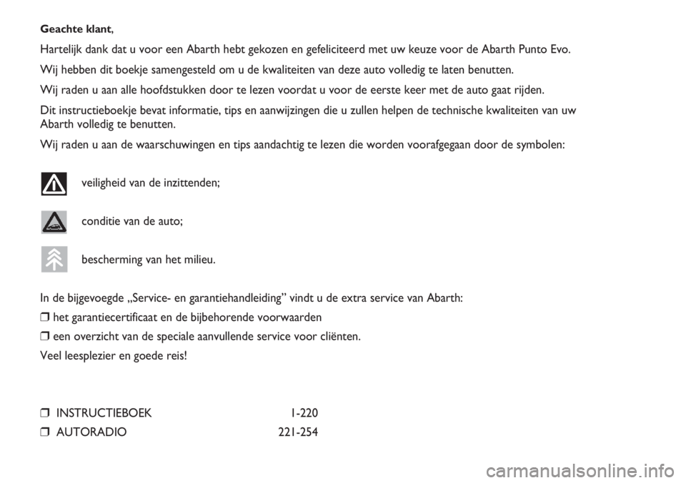Hartelijk dank dat u voor een Abarth hebt gekozen en gefeliciteerd met uw keuze voor de Abarth Punto Evo.