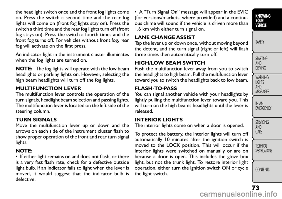 defective. • A “Turn Signal On” message will appear in the EVIC