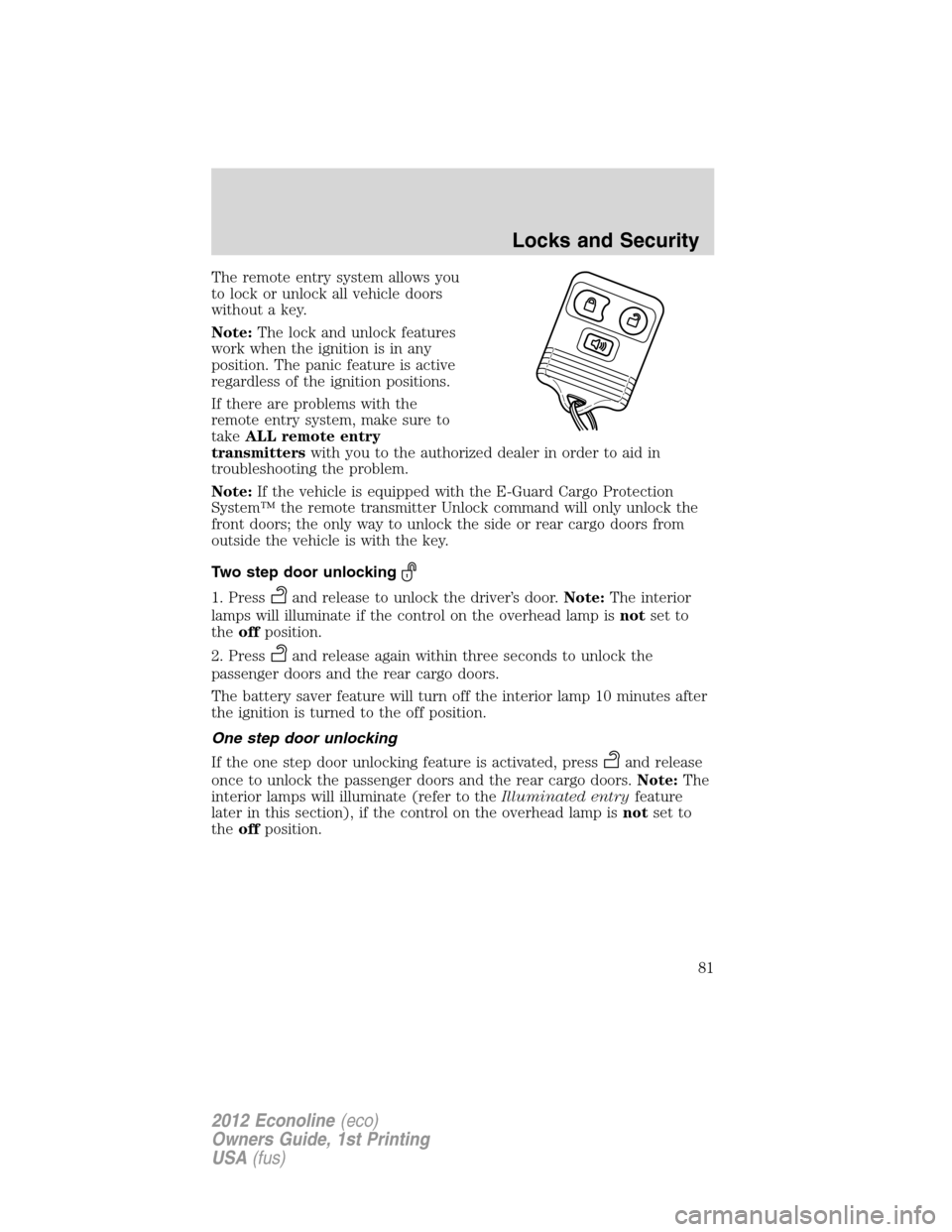 FORD E SERIES 2012 4.G Owners Manual The remote entry system allows you