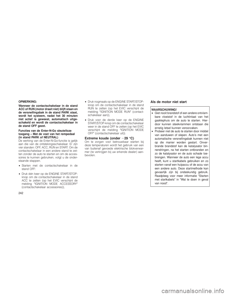 JEEP GRAND CHEROKEE 2012  Instructieboek (in Dutch) ’Verzopen’ motor starten (met de ENGINE
