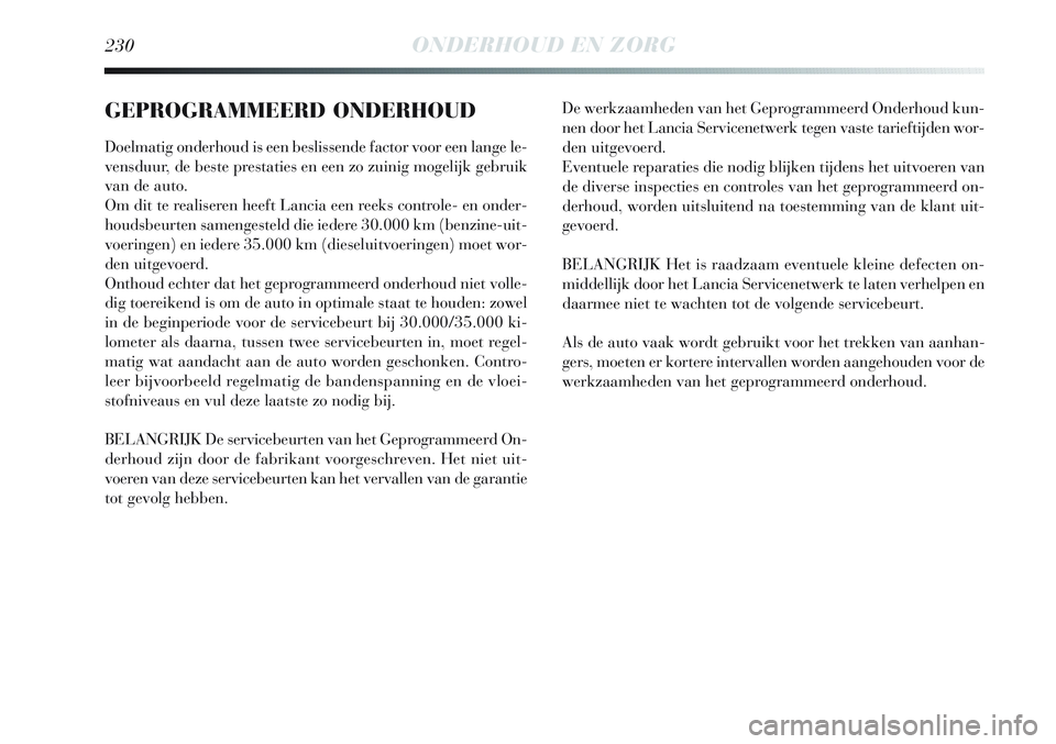 – het is raadzaam u hiervoor tot het Lancia Servicenetwerk te wenden.