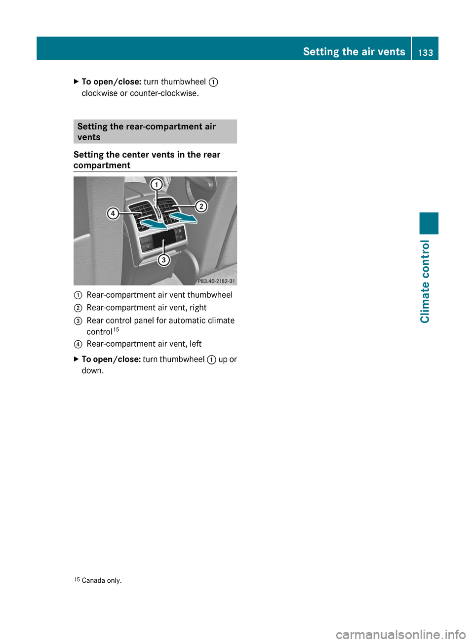 down.15 Canada only.Setting the air vents133Climate controlZ