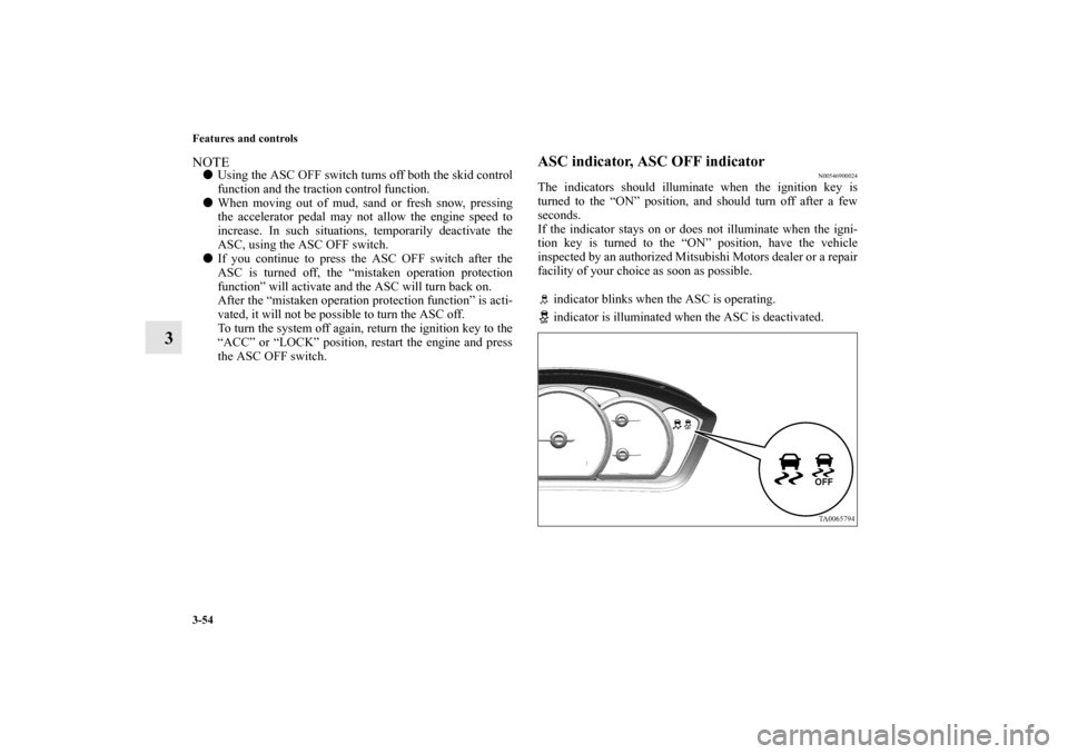 MITSUBISHI GALANT 2012 9.G Owners Manual 3-54 Features and controls