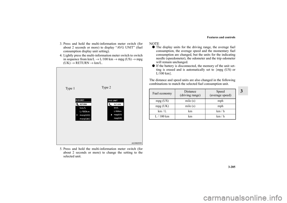 about 2 seconds or more) to display “AVG UNIT” (fuel
