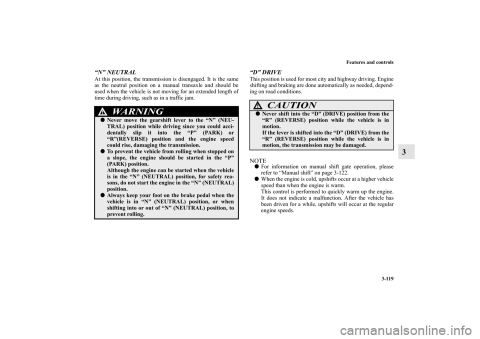 MITSUBISHI LANCER SE AWC 2012 8.G Owners Manual 3-118 Features and controls