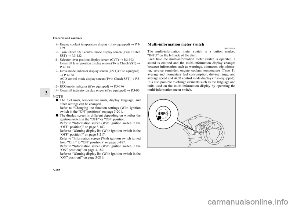 MITSUBISHI LANCER SE AWC 2012 8.G Owners Manual 3-182 Features and controls