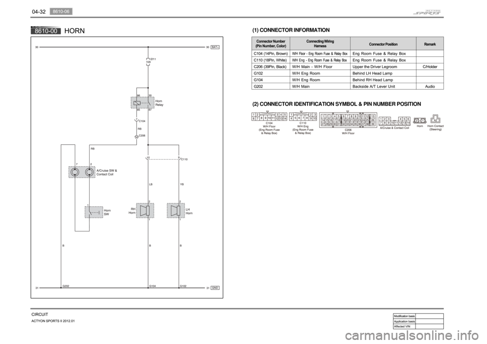 (2) CONNECTOR IDENTIFICATION SYMBOL & PIN NUMBER POSITION (1) CONNECTOR INFORMATION