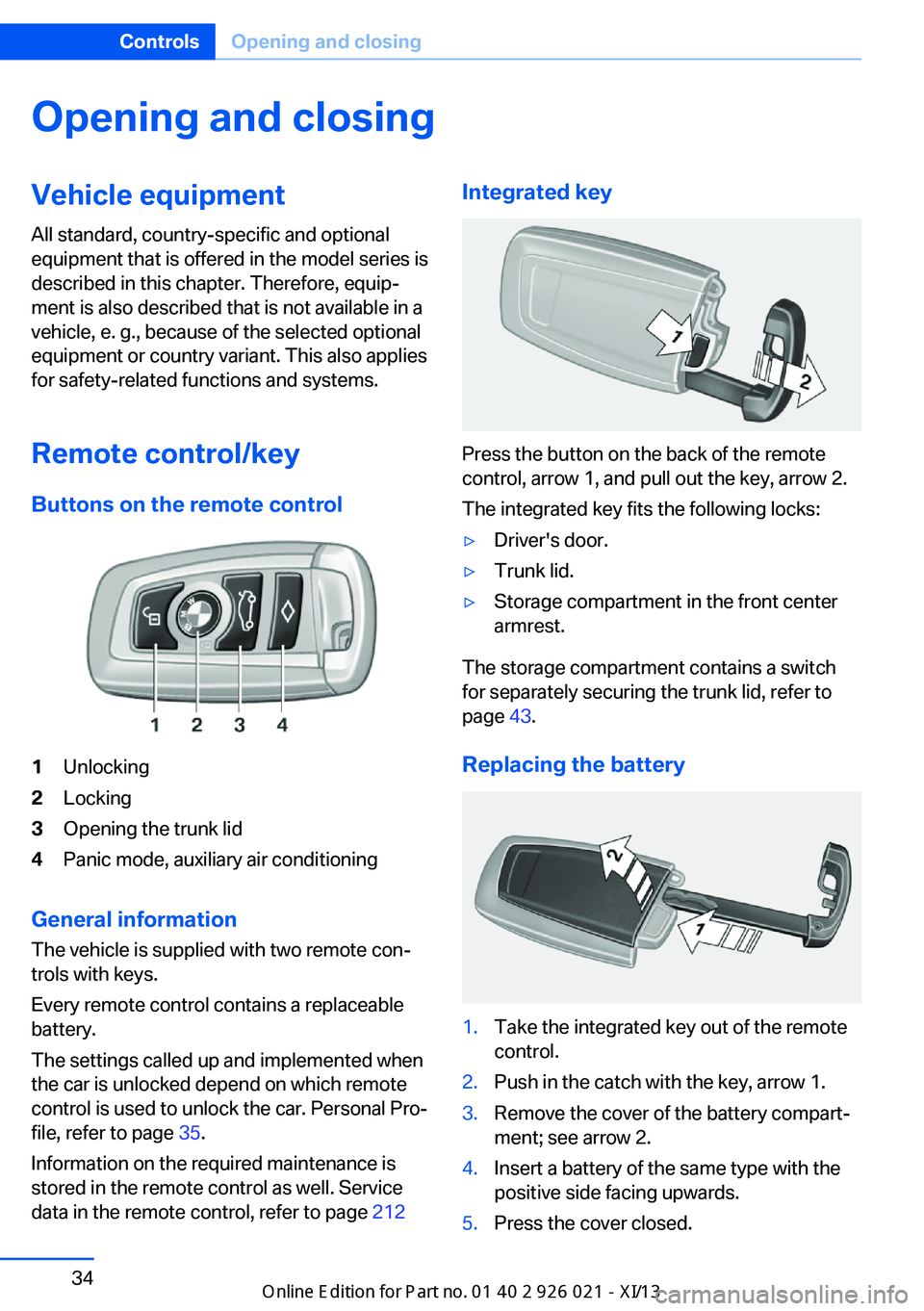 positive side facing upwards.5.Press the cover closed.Seite 34ControlsOpening and closing34