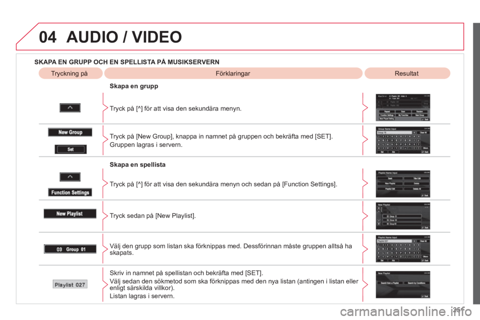För att visa grupplistan, spellistan et