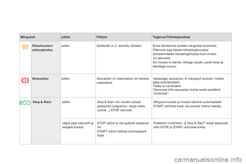 Märgutuli kustub ja mootor käivitub automaatseltSTART režiimile kohe, kui soovite sõitma hakata.