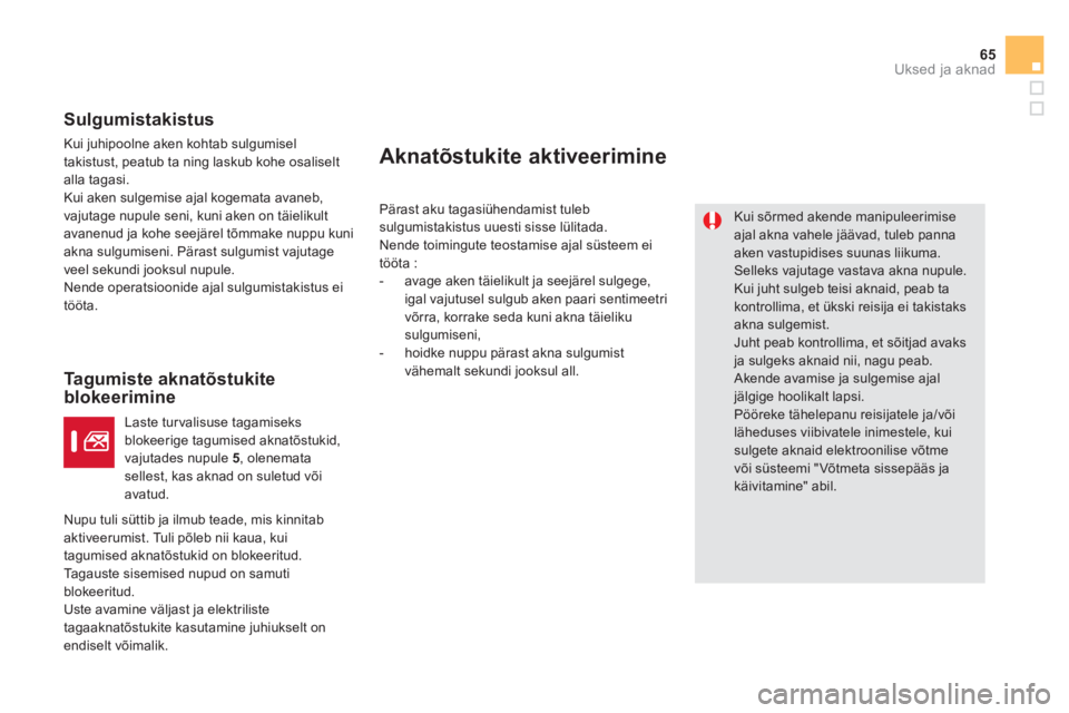 Kui juht sulgeb teisi aknaid, peab ta kontrollima, et ükski reisija ei takistaksakna sulgemist. Juht peab kontrollima, et sõitjad avaks ja sulgeks aknaid nii, nagu peab. Akende avamise ja sulgemise ajal jälgige hoolikalt lapsi.