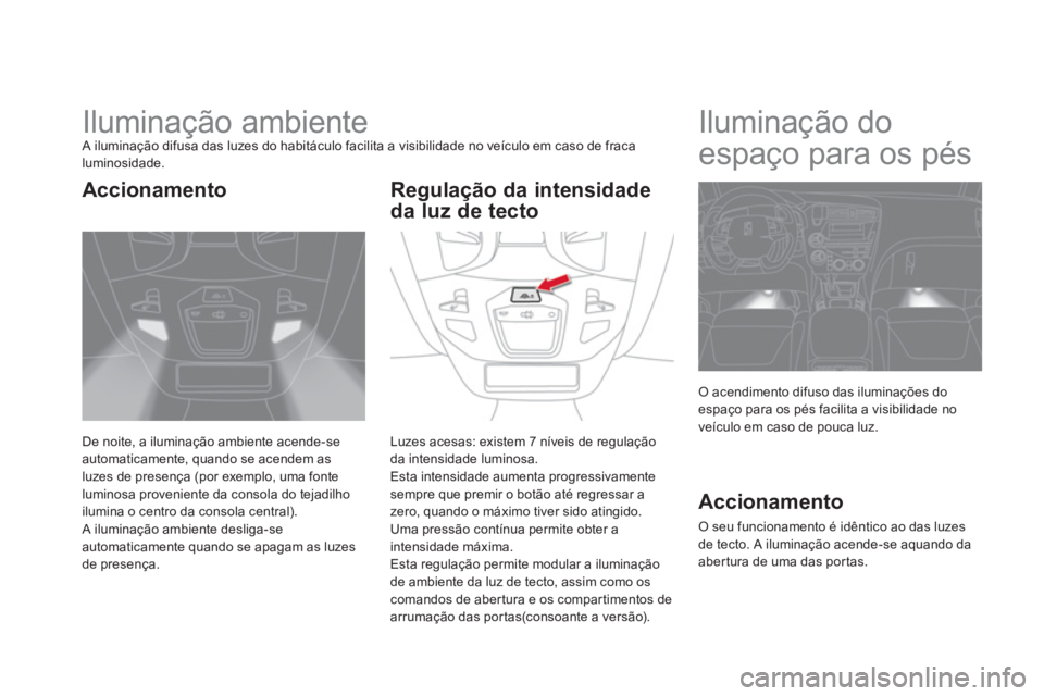 Iluminação ambiente A iluminação difusa das luzes do habitáculo facilita a visibilidade no veículo em caso de fracaluminosidade.