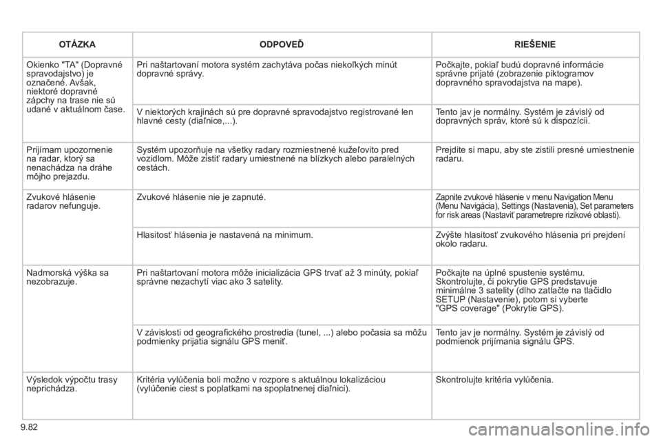 Vozidlo je príliš vzdialené od vysielača počúvanej stanice, alebo sa v prechádzanej geografi ckej zÛne nenach·dza ûiaden vysielač. Aktivácia funkcie "RDS" (RDS) umožní systémuskontrolovať, či sa v prechádzanej geografi ckejzÛne nenach·dza v˝konnejöÌ vysielač.