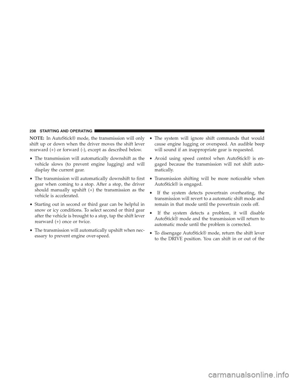 TRAL, DRIVE, and AutoStick® shift positions. Manual