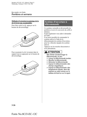 en toute sécurité de votre Mazda. Si vous devez revendre votre véhicule, laissez ce manuel dans la boîte à gant à