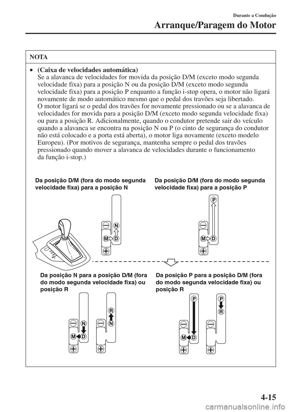 velocidade fixa) para a posição P enquanto a função i-stop opera, o motor não ligará