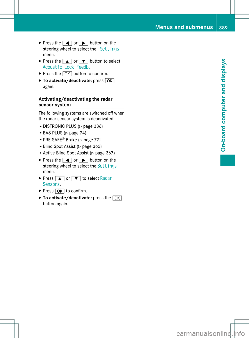Switch on the radar sensor system (Y page 389).Lane Keeping