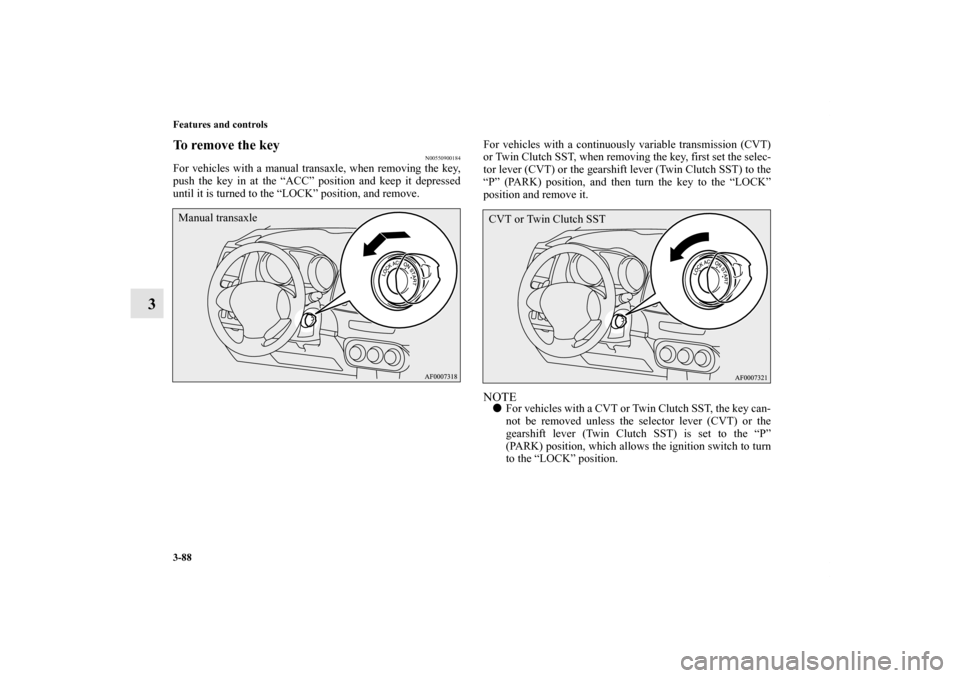 MITSUBISHI LANCER 2013 8.G Owners Manual 3-88 Features and controls