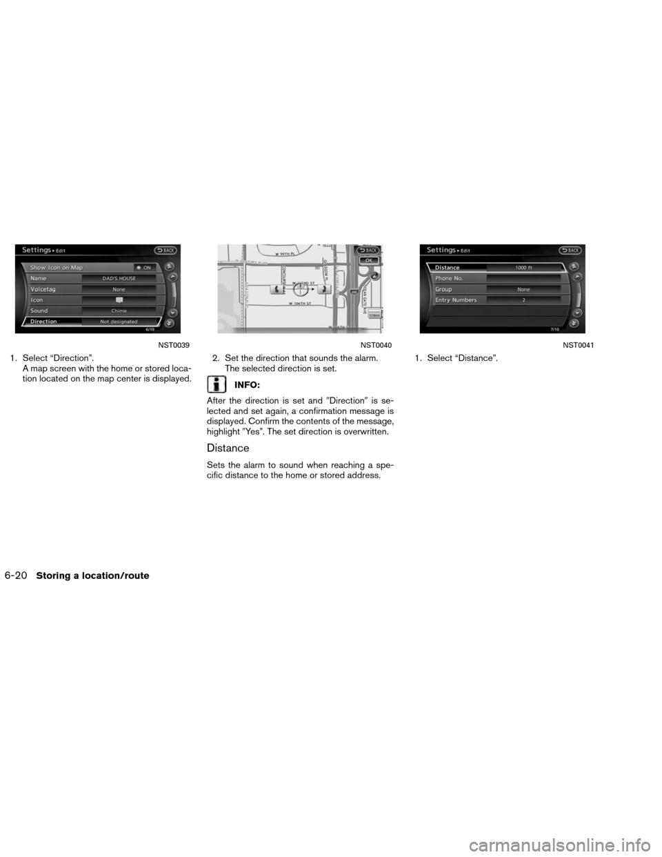 1. Select “Direction”.A map screen with the home or stored loca-
