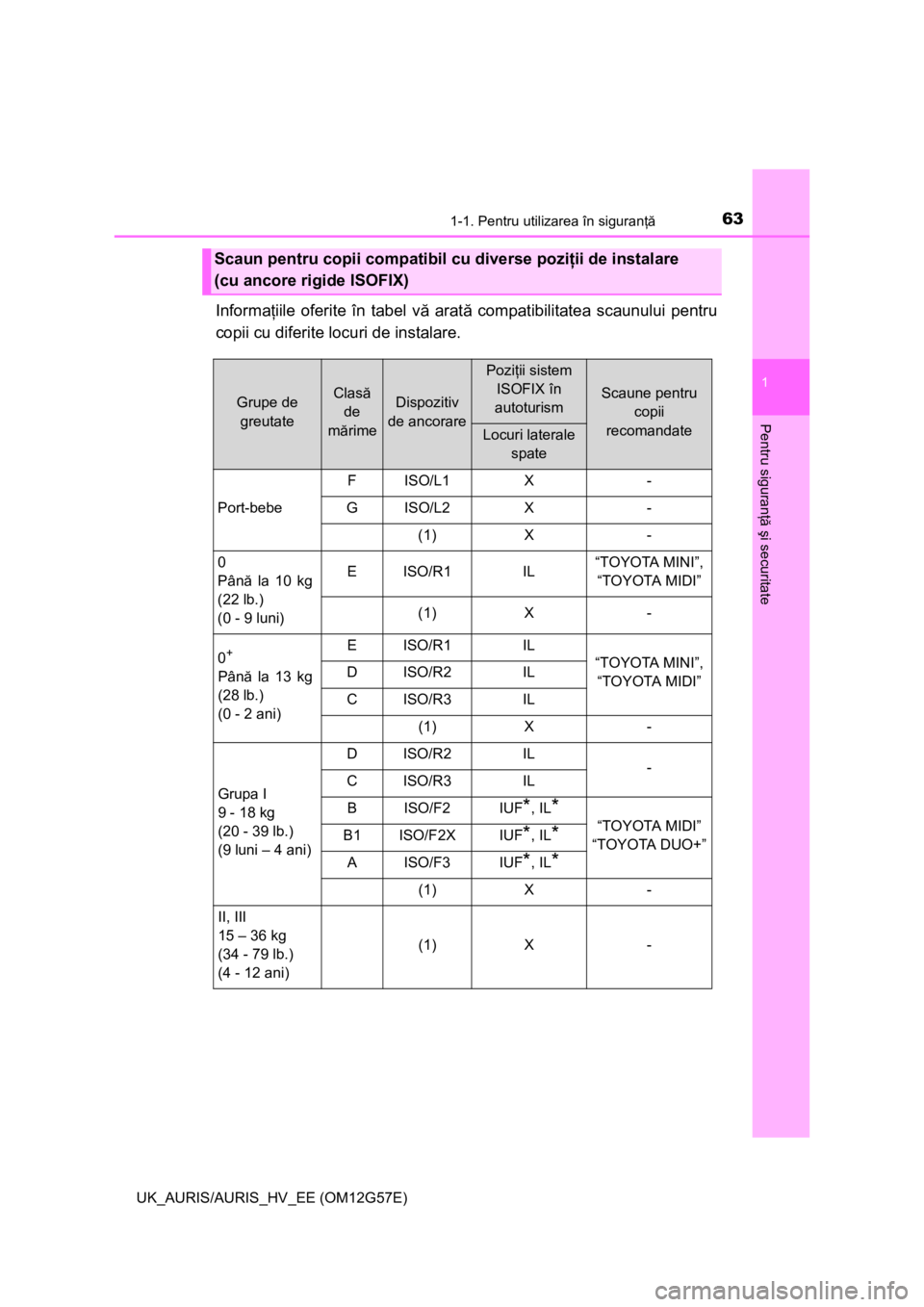 scaunele pentru copii, adresaţi-vă unui dealer autorizat Toyota sau