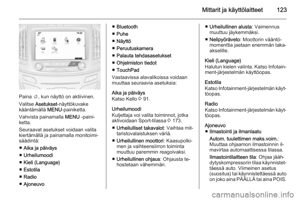 Seuraavat asetukset voidaan valita kiertämällä ja painamalla monitoimi‐
