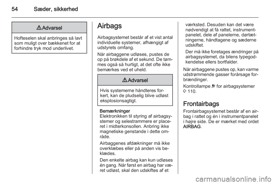 54Sæder, sikkerhed9Advarsel