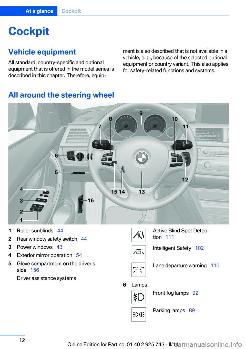 BMW 320I XDRIVE 2014  Owners Manual CockpitVehicle equipment